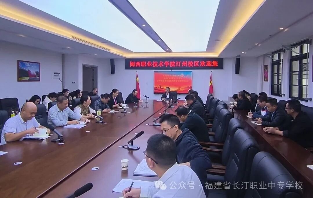 近日,闽西职业技术学院汀州校区、福建省长汀职业中专学校召开专题会议,传达并学习全市校园安全通报视频会议精神。学校党委书记肖贞祥主持会议并讲话,学校各中心负责人、系部主任及安全工作相关人员参加会议。