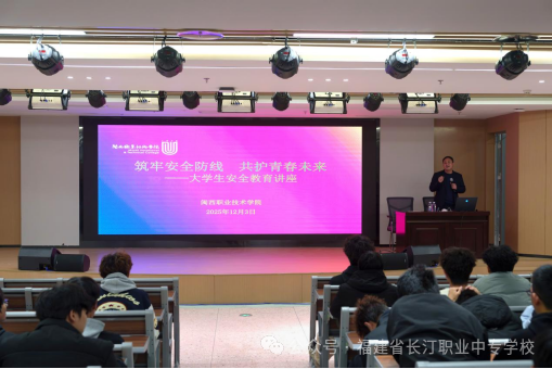 当天晚上,校本部安保处王培林副处长还为汀州校区大专学生开设了一堂《筑牢安全防线 共护青春未来》安全教育主题讲座。讲座聚焦电信诈骗防范与交通安全规范两大核心主题,为汀州学子带来了一场专业性与实用性兼具的安全知识普及课。