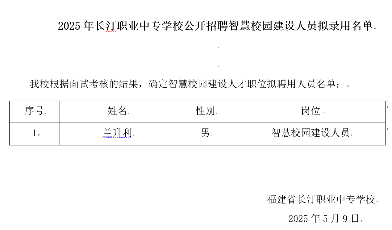 2025年长汀职业中专学校公开招聘智慧校园建设人员拟录用名单