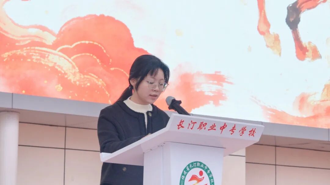 教师代表陈瑶老师庄严承诺:借三匹“骏马”的精神,与大家共话成长、共赴未来。由春节档电影《飞驰人生2》引出第一匹脚踏实地的“负重马”一一以坚韧为蹄,跨越学习的沟壑;由春节的两个火遍全网的“中国造”引出第二匹锐意进取的“开创马”一一以创新为翼,飞向时代的风口;从“制造大国”迈向“制造强国”更需要高技能人才引出第三匹心怀远方的“千里马”一一以热爱为鞍,奔赴技能报国的山海。