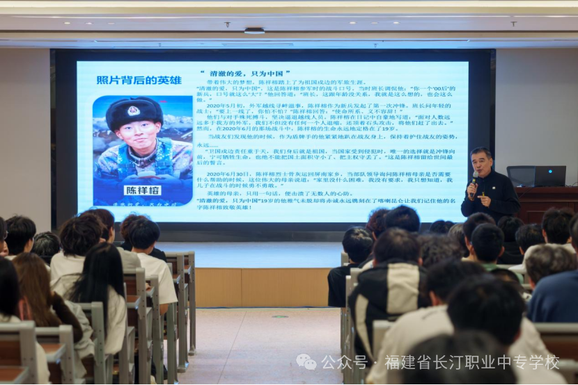 2025年10月30日,在三年制大专学生军训即将全面展开之际,闽西职业技术学院汀州校区举行了一场别开生面的“以乐传情,让家国与亲情住进心里”国防教育主题音乐美育讲座。本次讲座特邀校党委书记卢伟耀担任主讲,创新性地以音乐作品为纽带,将艺术感染力与国防教育深度融合,为即将参加军训的学子们进行了一次深刻的思想动员和情感熏陶。