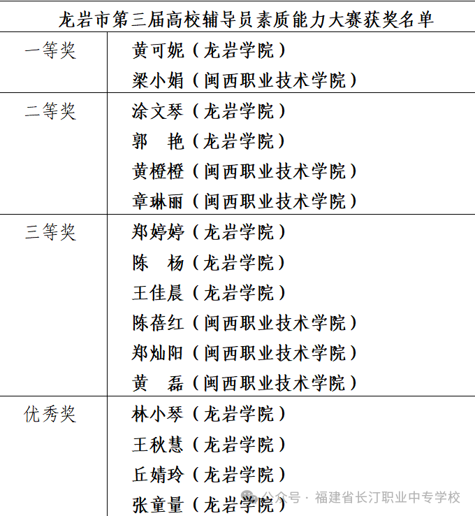 冬日暖阳映初心,赛场竞技展锋芒。12月1日至2日,龙岩市第三届高校辅导员素质能力大赛在激烈角逐中圆满落幕。闽西职业技术学院汀州校区的梁小娟老师凭借扎实的专业素养、灵活的应变能力与深厚的育人情怀,一路过关斩将、脱颖而出,最终斩获一等奖的优异成绩,为校区赢得了荣誉。