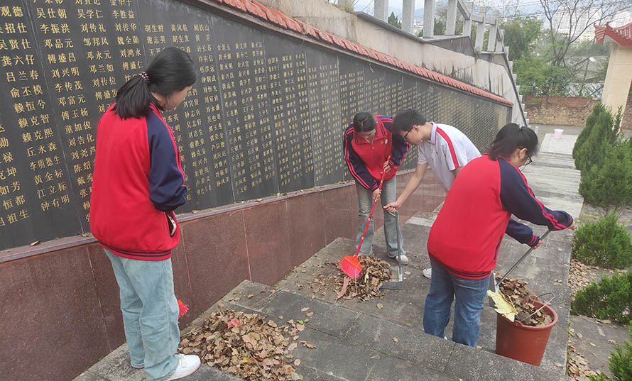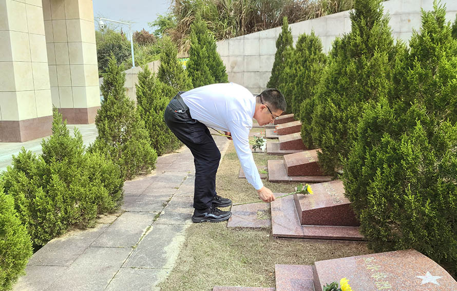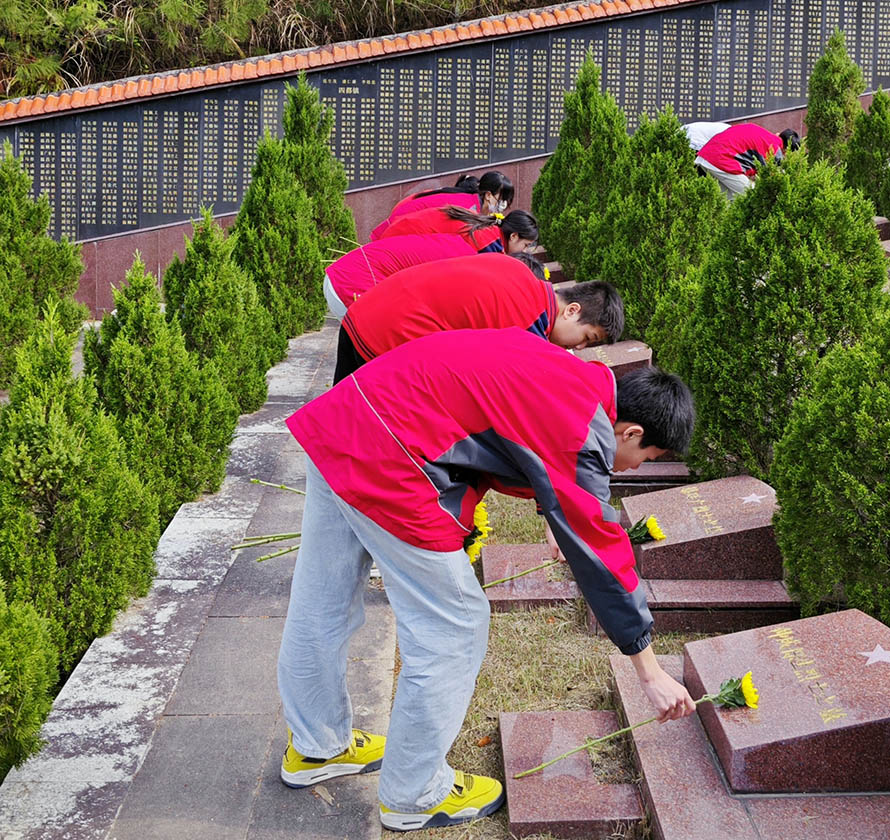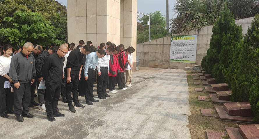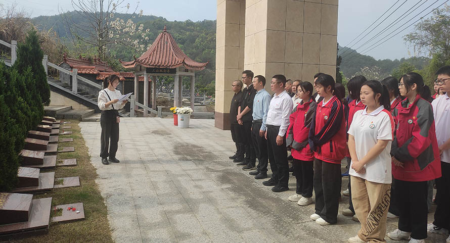 天地英雄气,千秋尚凛然。全体人员整齐列队,肃立垂首,默寄哀思,向为民族独立、全国解放、新中国成立献出生命的烈士们致以最崇高的敬意。团委的陈瑶老师带领全体人员一起重温了闽西苏区党史故事。学校党委书记、校长肖贞祥率领全体师生怀着无比崇敬的心情依次有序绕行烈士墓,久久顿足,凝目瞻仰。向革命烈士墓敬献鲜花,寄托对革命先烈的哀思。