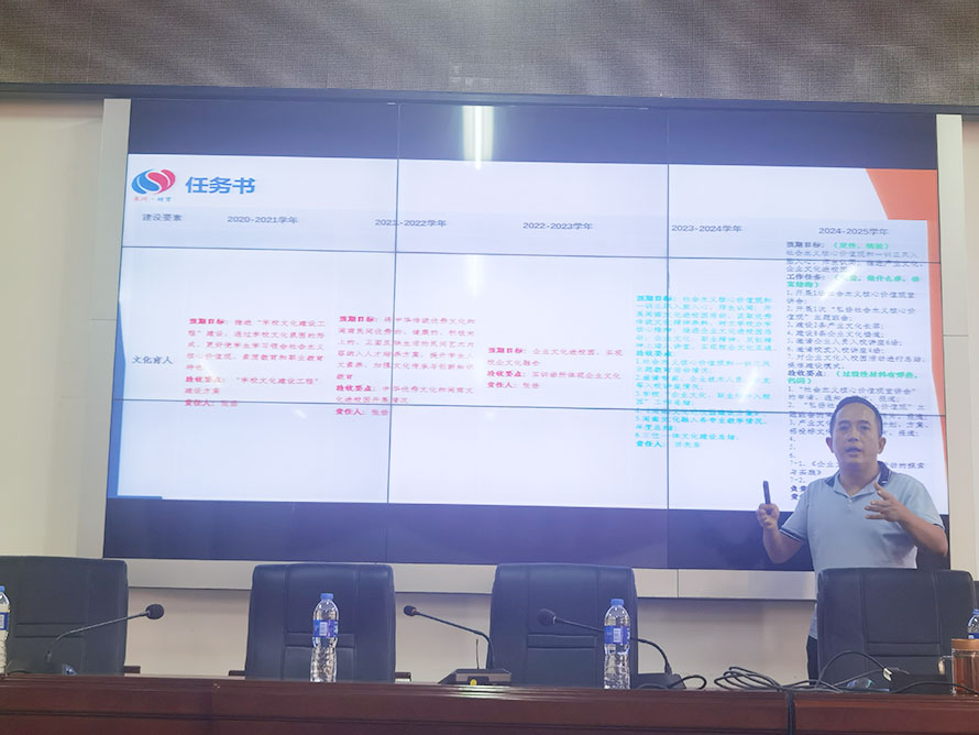 会上,张扬书记强调“一部党史就是一本本鲜活的思政课教科书,就是一堂堂生动的思想政治教育大课堂。”我们要铭记党的历史、牢记党的使命,传承红色基因,在课堂中融入思政,将党史学习教育深入课堂,增进我校学生对党的认识与了解,并勇于承担新时代所赋予的重要使命,打造冒热气、接地气、聚人气的活力课堂。同时,他还结合我校“双高计划”建设进行详细指导,提出了许多宝贵的意见。