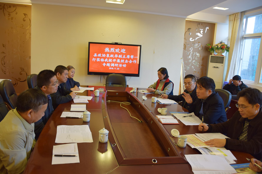 为推动我县校企合作走向良性循环,为企业输送技能型合格人才,更好服务县域经济,2018年11月20日,县政协副主席袁跃华、县政协文教卫体委主任丘启源、县教育局副局长王红梅等一行来我校开展校企合作调研工作,召开相关人员座谈会,赖友生校长详细介绍了学校近几年来校企合作开展情况,提出了存在的主要问题及建议。调研组一行还走访了得力机电有限公司、金龙稀土有限公司、福建供销一家等企业,听取了企业相关建议。