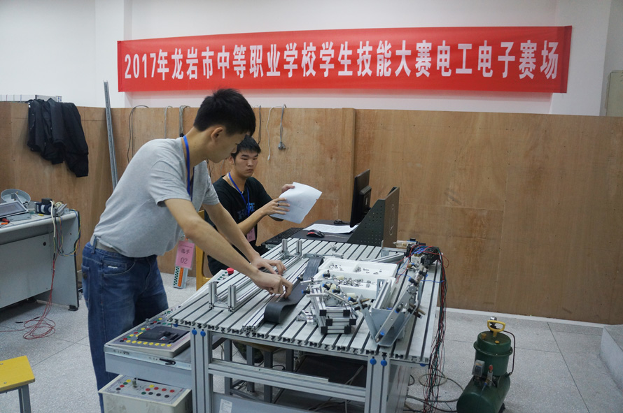 龙岩市2017年中职学生技能大赛于10月29日开赛,本次大赛共开设34个项目,分4个赛区进行,长汀职专分赛区承担电子电工类和石油化工类项目比赛。来自龙岩技师学院、龙岩侨中、武平职专、长汀职专共18名选手分别参加了单片机控制装置安装与调试、机电一体化设备组装与调试、工业分析检验项目的比赛。经过一整天的紧张比赛,顺利结束了赛事。
