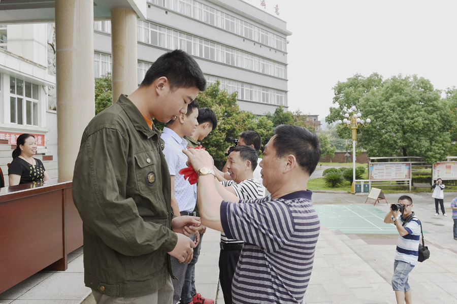 陈腾校长代表学校向此次赴山东省潍坊市参加国赛的师生们表达了殷切的期望和深深的祝福,希望选手们在比赛中,要注意安全,以扎实的功底、娴熟的专业技能,沉着应对、认真细致完成各项比赛任务,力争在国赛中取得好成绩。欢送会上学校领导为指导教师吴金贵和选手吴建宾、黄钧涛同学佩戴红花。