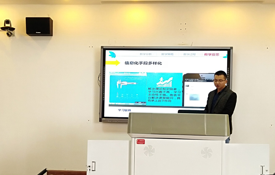 本次比赛活动分为撰写信息化教学设计60分钟、讲解10分钟、答辩3分钟。信息化教学设计讲解从教材、教法、学法、教学策略、教学过程和教学反思等方面展开,在讲解过程中各位选手充分使用微课、翻转课堂、雨课堂、问卷星、手机微信功能及网络教学平台等信息化教学手段,得到了专家评委的一致好评。