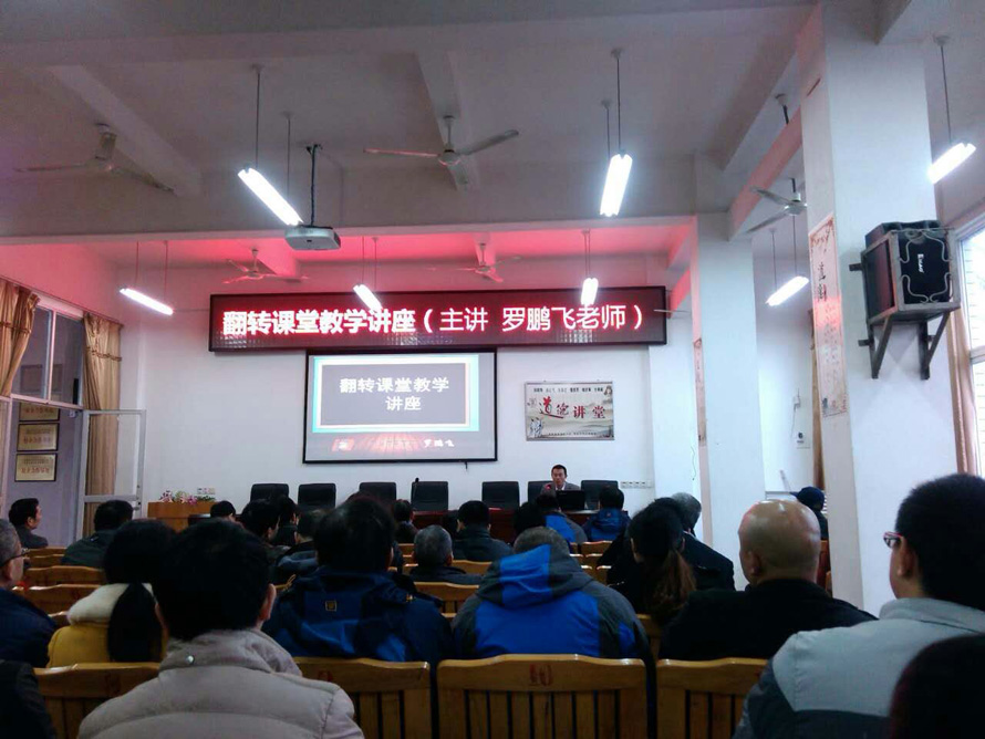 为深入把握微课与翻转课堂理念及制作方法,进一步提高我校教师现代信息技术应用水平,不断优化中职课堂教学。2015年12月14日下午,罗鹏飞老师作了题为《翻转课堂教学》的专题讲座。