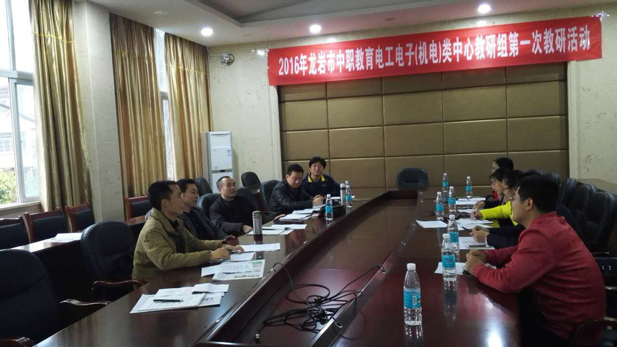 2016年3月30日, 2016年龙岩市中职教育电工电子(机电)类中心教研组第一次教研活动在我校召开。龙岩市教育局职教中心教研员冯宝庆老师及来自全市各中职学校电工电子(机电)类专业的11名老师参加会议。