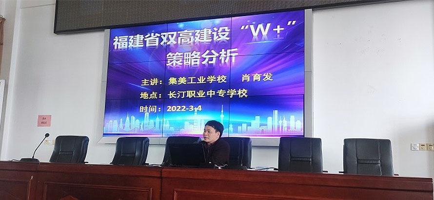 3月4日,两校开展了闽西南协调发展结对帮扶系列活动。集美工业学校肖育发主任作了题为《福建省双高建设“W+”策略分析》专题讲座,讲座以学校整体发展规划为出发点,分享了“双高计划”争创的着力点和高水平专业群建设的具体举措。