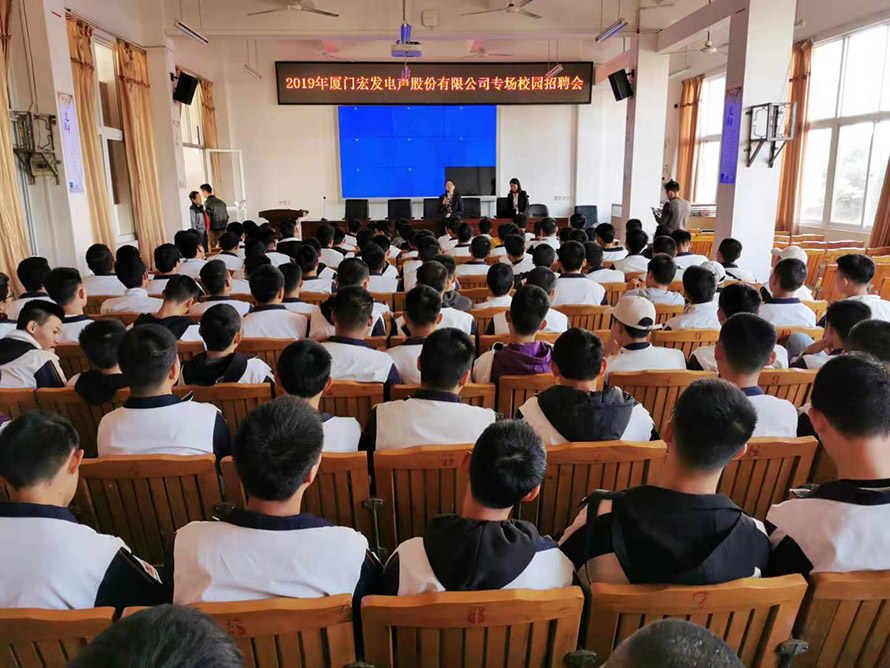 11月21日下午,我校在教工会议室举办了厦门宏发股份有限公司校园专场招聘会,2017级电子、数控两个专业近200名学生参加了此次招聘会,会上该公司负责人就企业文化、工作环境、薪资待遇、企业发展前景、岗位需求及要求等方面向同学们进行了详细的介绍,积极向同学们抛出了橄榄枝,同学们也表现出了极大的热情,踊跃报名,当场有30多人签订了就业意向书。厦门宏发股份有限公司与我校合作了十多年了,每年都有二三十人到该公司,据反馈,我校学生在工作上更认真、更努力,工作稳定性更强,所以希望我们有更多的学生加入他们。
