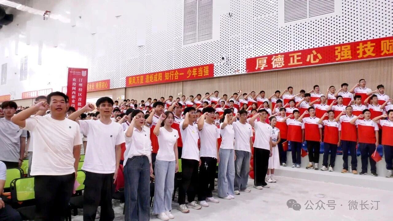 卢伟耀在致辞中向来自各地的同学们表示热烈的欢迎和祝贺,并寄语同学们厚植爱国情怀,用匠心学习钻研,练就过硬本领,培养良好品德,努力成为家庭的顶梁柱,社会主义的建设者、接班人。教师代表和新生代表分别作了发言。随后,出席典礼的领导嘉宾为新生代表们佩戴校徽,在领誓人的引领下,新生们进行了庄严的入学宣誓。