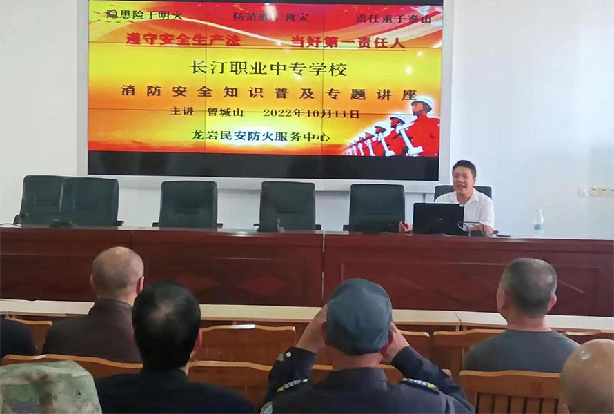 为迎接党的二十大胜利召开营造安全稳定的校园环境,我校结合第33个国际减灾日主题“早预警、早行动”,坚持以“安全第一,预防为主”的方针,进一步做好消防安全工作,提高教职工的消防安全意识及火灾应急处理能力。10月11日下午,我校邀请了龙岩市民安防火服务中心的曾城山老师来校开展安全知识讲座。