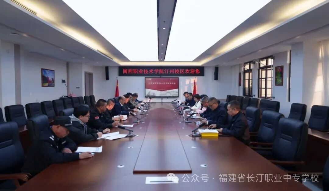为进一步推进中高职融合办学提质增效,强化跨校区安全管理协同。12月3日,闽西职业技术学院副校长连玲娜率安保处林小勇一行到汀州校区就中高职融合办学中的跨校区安全管理工作进行专题调研。汀州校区管委会书记钟亮梅,管委会主任、长汀职专党委书记肖贞祥,党委副书记刘文华及相关人员参加交流座谈会。