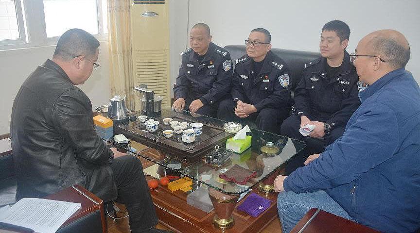 为进一步维护校园治安秩序,不断增强师生安全防范意识,构建和谐平安校园。2月7日上午,长汀县公安局副局长曾春祥、大同派出所教导员赖文光、警官李海金等莅校开展走访工作。我校党支部书记、校长赖友生、党支部副书记刘文华和综治安全处主任丘明飞陪同。