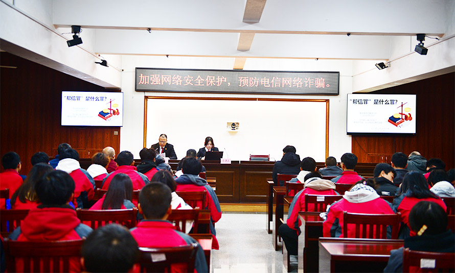 庭审结束后,张寿安院长以长汀职专法治副校长的身份为学生们上了一堂以“守护青春·无诈校园 ”为主题的法治公开课。课上,张寿安院长寄语同学们,要遵纪守法、树牢底线,扣好人生的第一粒扣子,走好人生的每一步;要勤学本领、打好基础,明辨是非曲直,勇担时代使命;要厚积薄发、担当作为,能经得起生活的挫折和诱惑,成为建设法治中国的坚实栋梁。