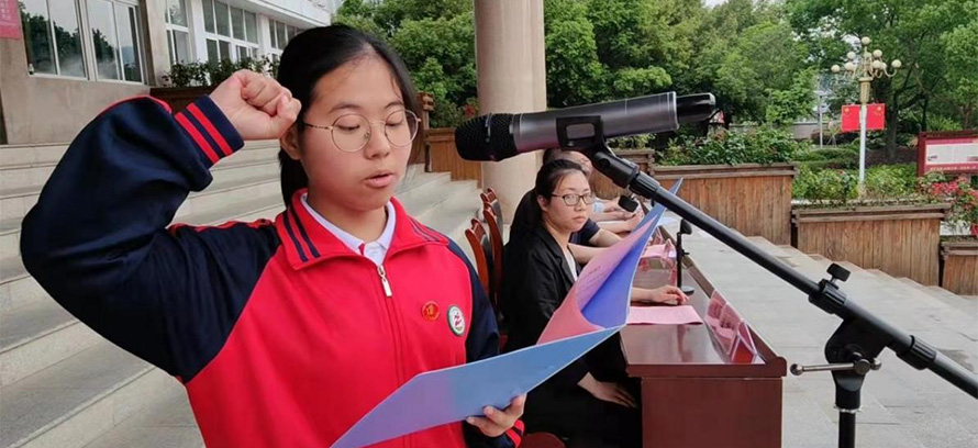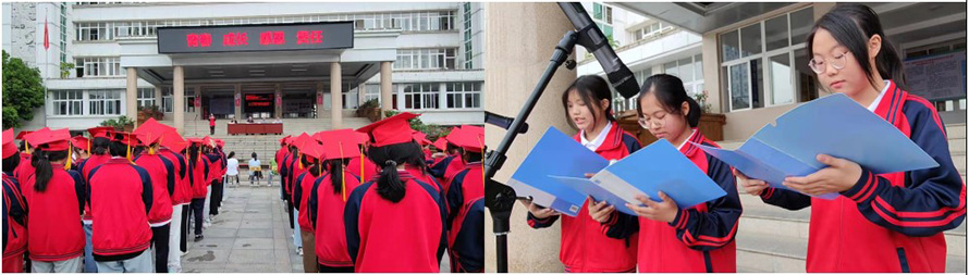 全体同学面向国旗庄严宣誓,大声地说出自己的成人誓言:“我是中华人民共和国公民。我将遵守宪法和法律, 拥护中国共产党的领导, 正确行使权利, 忠实履行义务, 弘扬社会道德, 爱国、励志、求真、力行, 做有理想、有本领、 有担当的好青年, 努力成为中国特色社会主义合格建设者和可靠接班人。”