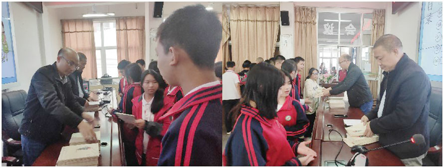 会上,刘文华副书记和德育处俞登奎主任给在场的同学们赠送了《中华好家风》宣传教育读本。