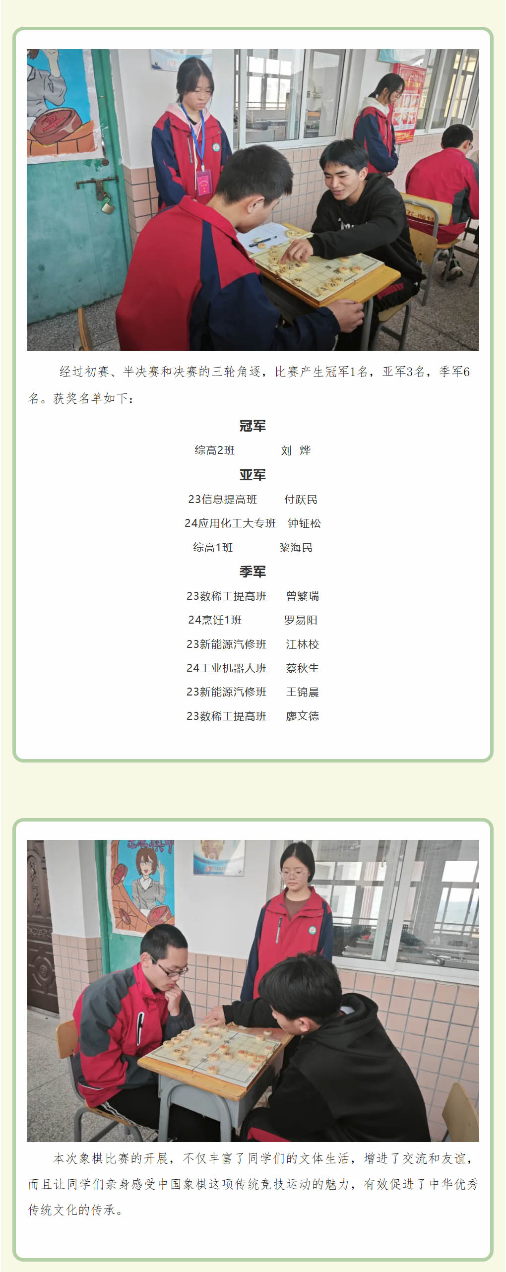 棋逢对手 乐在“棋”中 ——学校举办2024年“迎新杯”中国象棋比赛