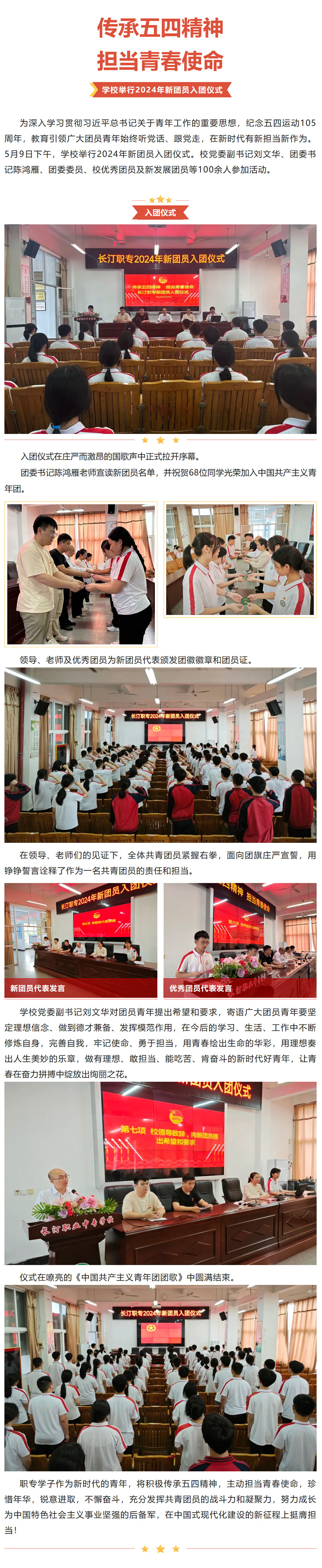传承五四精神 担当青春使命——学校举行2024年新团员入团仪式