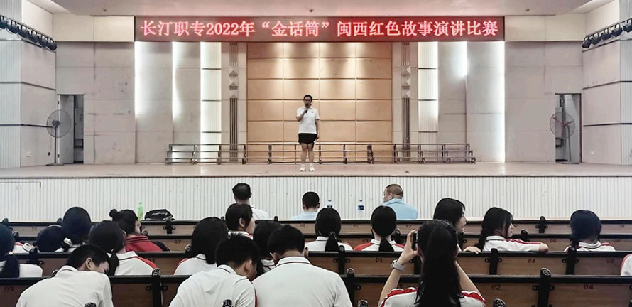 为了唱响新时代主旋律,迎接党的二十大的召开,讲好红色故事,传承红色基因,弘扬闽西光荣革命传统,把我校青少年爱国主义教育推向深入,9月27日至28日,校团委组织开展了以“诉说英雄故事,传承红色基因”为主题的长汀职专第十六届“金话筒”闽西红色故事演讲比赛。