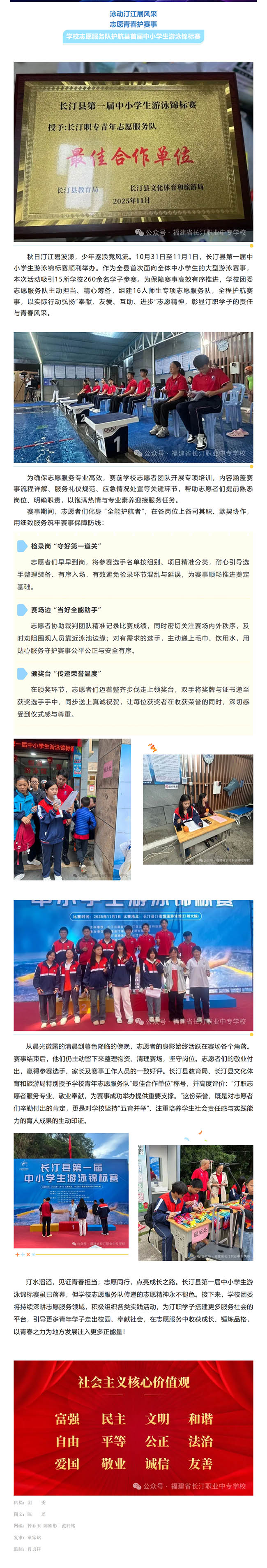 泳动汀江展风采 志愿青春护赛事——学校志愿服务队护航县首届中小学生游泳锦标赛