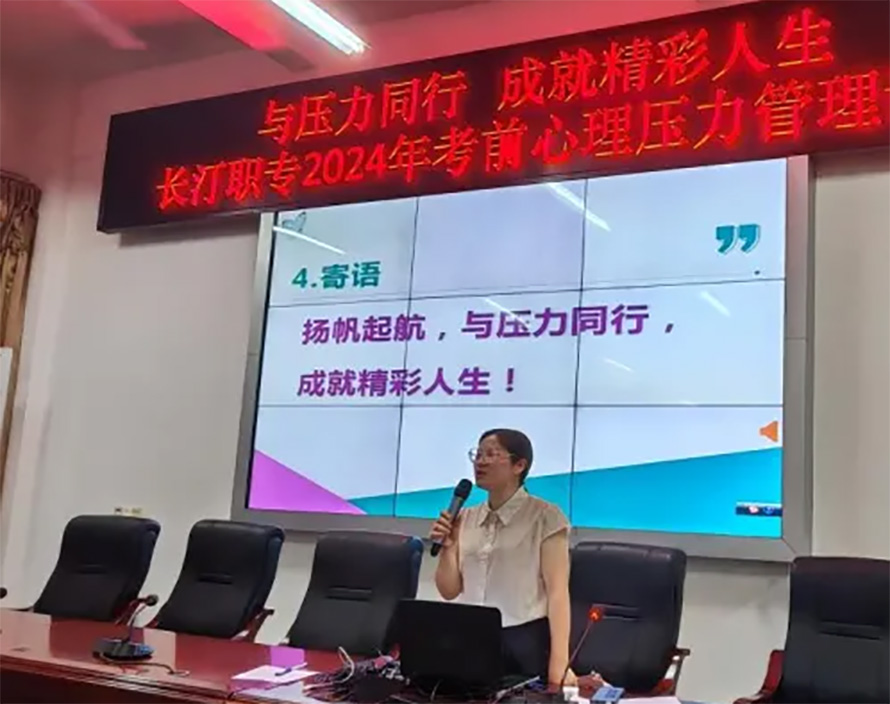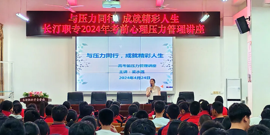 2024年职教高考临近,为了缓解考生焦虑烦躁的心理,培养学生平和心态及稳定发挥的心理素质。4月24日,心理咨询中心梁水莲主任为考生们作了以《与压力同行 成就精彩人生》为主题的职教高考前心理压力管理讲座。
