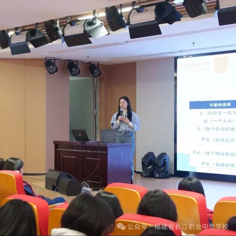 结合中职学生的身心发展特点与成长阶段需求,黎老师进一步剖析恋爱选择背后的心理动因与社会环境影响,引导同学们理性看待青春期的情感悸动。针对青少年群体可能面临的情感困惑与潜在风险,讲座聚焦过早性行为的身心危害这一关键议题,用真实案例敲响警钟,让同学们深刻认识到自我保护的重要性。同时,黎老师还通过情景模拟、技巧拆解等方式,细致教授如何理性、坚定地进行“性拒绝” 的沟通方法,帮助同学们掌握实用的自我保护技能。此外,讲座还融入与性相关的法律法规知识普及,进一步增强学生的法律意识和底线思维,让自我保护有法可依、有章可循。