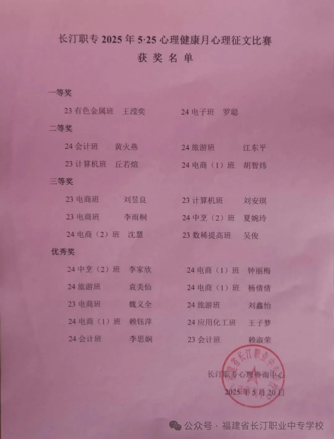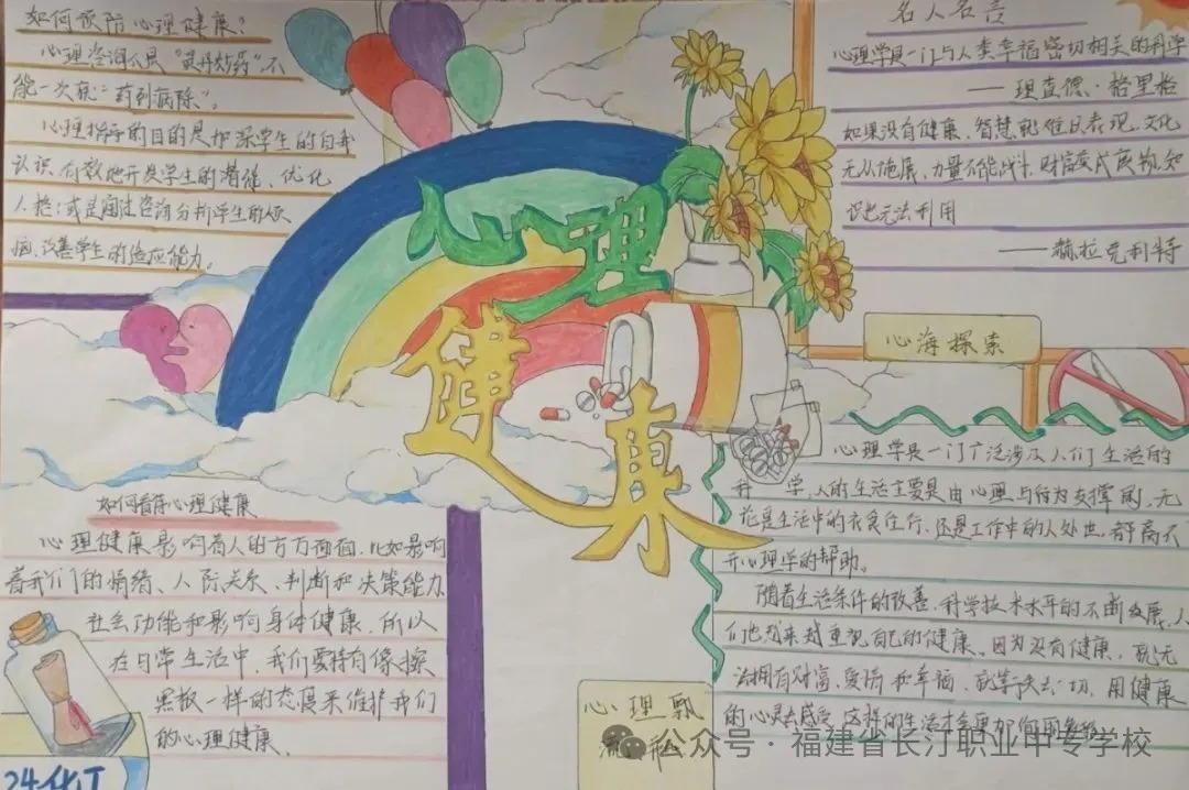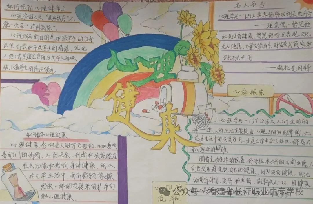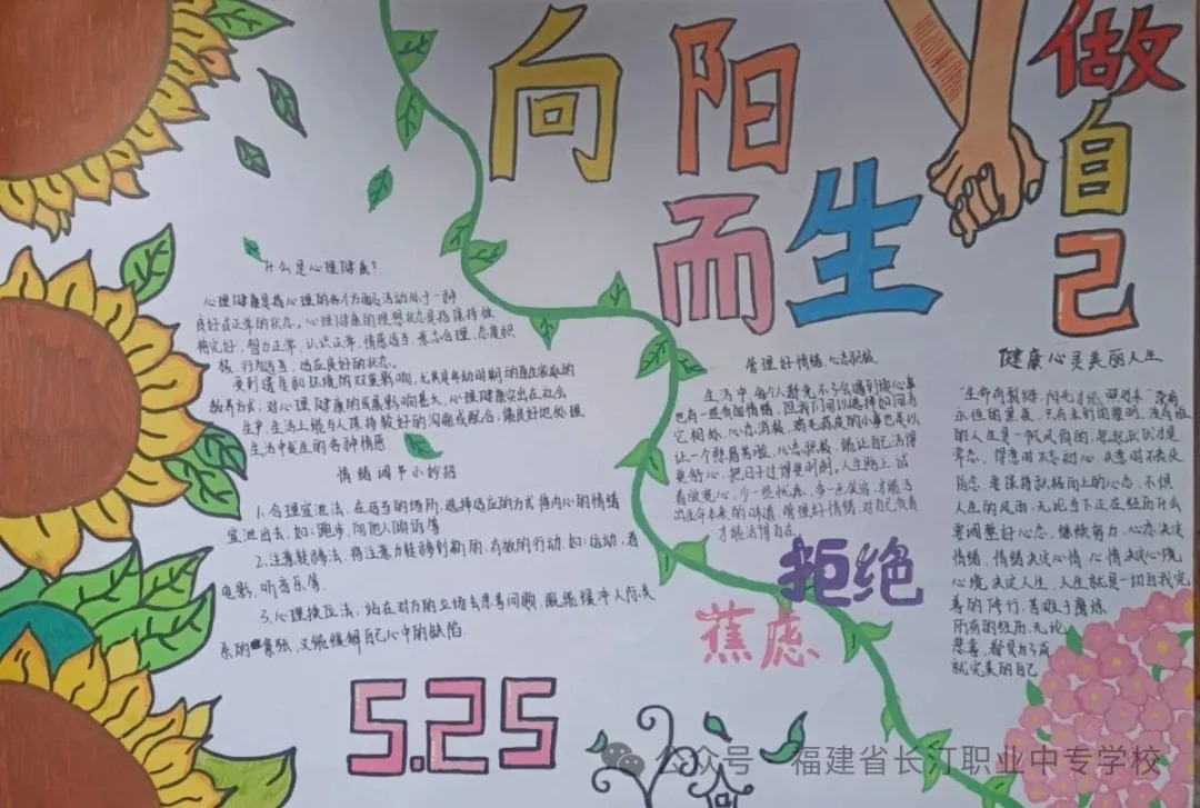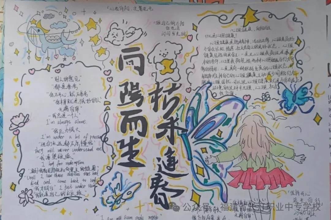 据悉,本次活动共收集手抄报作品200余幅、征文稿件 150 余篇,参与学生覆盖各年级专业。一幅幅色彩斑斓的手抄报、一篇篇情感真挚的征文,不仅展现了职专学子积极向上的精神风貌,更搭建起心理健康知识传播与心灵成长的互动平台。下一步,学校将持续推进心理健康教育系列活动,助力学生以阳光心态迎接学习与生活挑战。