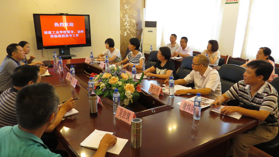 2016年9月6日,福建工业学校陈礁校长一行9人在县教育局陈腾副局长的陪同下,莅临我校参观交流。在家校领导及办公室、德育处、学生工作处、团委等处室负责人参加了座谈会,并与来宾就校园文化建设方面进行亲切而深入的交流与探讨。