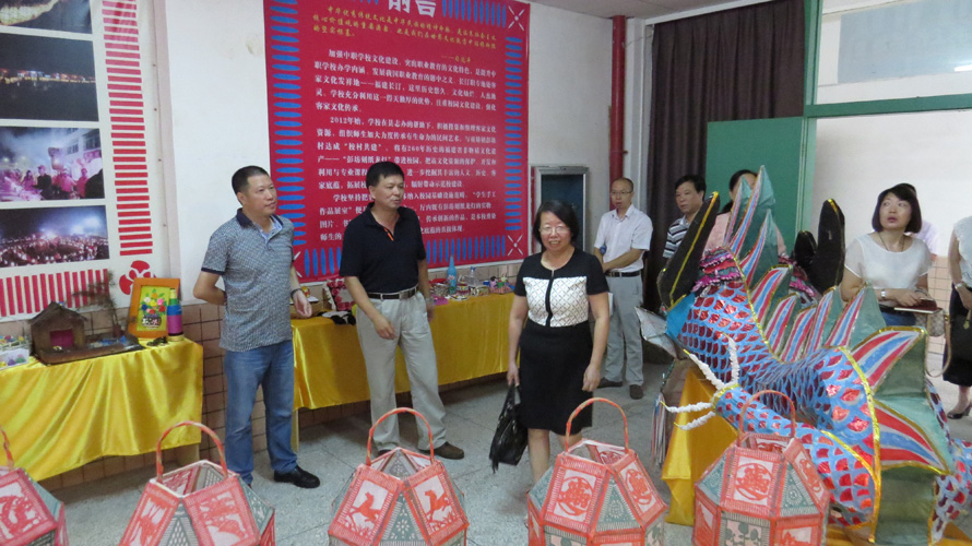 会后,学校领导与来宾一起参观了我校的校史馆、刻纸龙灯展览馆、数控及汽修实训室。