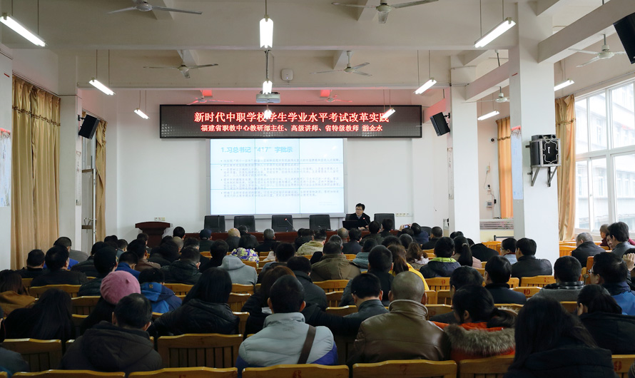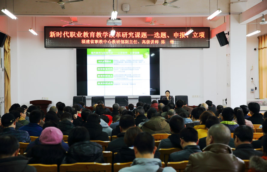 东风随春归,发我枝上花。春天是起点,是成长,是希望。结束春节假期,带着美好的祝福,踏着春天的脚步,新时代的我们再一次出发。2019年2月23日上午长汀职专邀请到福建省职业技术教育中心教研部主任游金水、副主任陈锋到校为全体教师作专题讲座,讲座由学校兰业腾副校长主持。