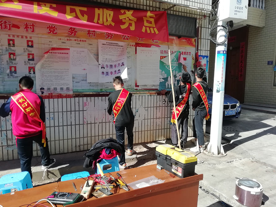 为响应县委、县政府关于开展“创建省级文明县城”的号召,密切联系群众,服务群众。根据学校2020年职业教育活动周活动统一部署,2020年11月13日,长汀职专电子组教师及学生家电维修志愿者走进大同镇东街社区,开展“职业技能进社区,爱心服务暖人心”为主题的志愿者活动。