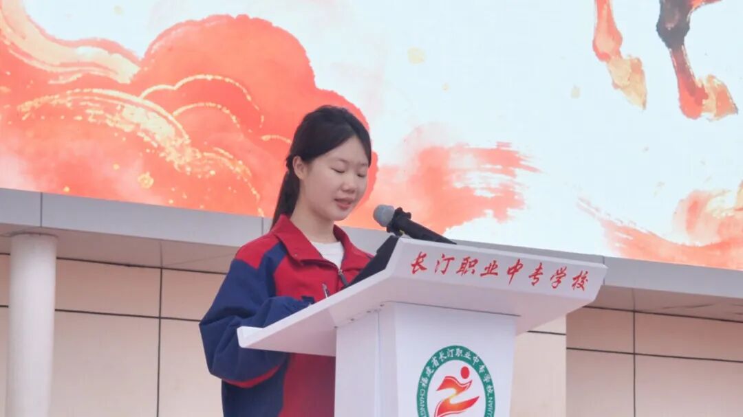 学生代表周子墨上台发言,她代表全体学生表达了对新学期的期待与决心,表示将勤学善思,精进专业技能,努力练就过硬技能,为未来就业、服务社会做好准备;严于律己,涵养优良学风,自觉遵守校规校纪;勇于担当,全面提升自我,让青春在担当与奉献中绽放光彩。
