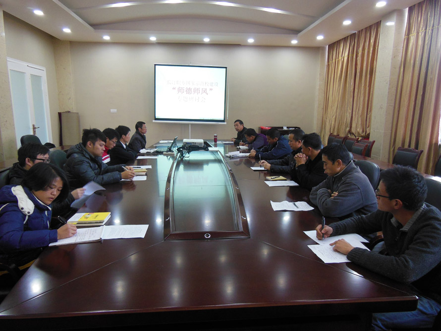为了配合示范校建设,更好地落实“当人民满意教师、办人民满意教育和“学为人师 、行为示范”为准则,以“爱岗敬业、教书育人、为人师表”为核心,以提高教师政治思想素质和职业道德水平为重点培养目标,更好地为示范校建设服务。校党支部、工会于12月2日下午第三节课在二楼行政会议室召开师德师风专题研讨。会议由党支部书记兰福荣同志主持,德育处、教务处、总务处、教学督导组、工会、团委、各科段(由科长或主任组成)、教师代表参加了会议。