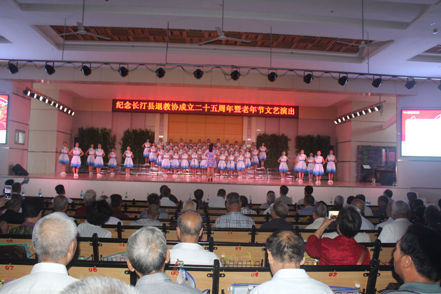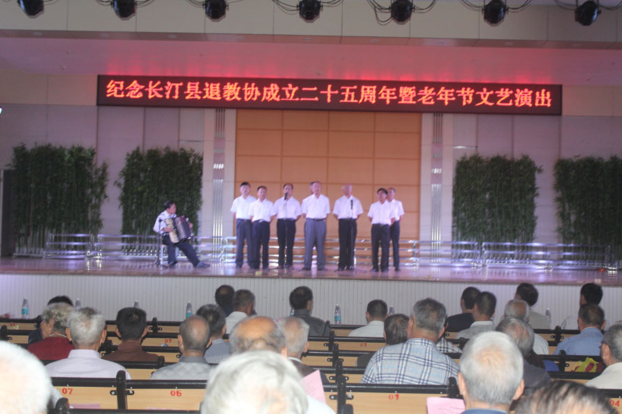 10月9日是我国尊老、敬老、爱老、助老的传统节日“九九”重阳节。这天上午,县退教协在长汀职专举行“纪念长汀县退离休教育工作者协会成立25周年庆祝大会暨老年节文艺汇演”。县委常委分管教育刘演昌、分管教育副县长廖凤英、教育局副局长陈腾水、人社局副局长王慕荣、我校校长丘晓松等领导亲临大会指导,原政协副主席陈永昌、原教育局长李伟业、朱征华等老领导应邀出席大会,全县各基层分会理事及城区分会会员近千人参加了活动。丘晓松校长高度重视,亲力亲为,学校工会钟瑜主席亲自抓好各项工作,从文艺节目的准备到会议的筹备、节目的审定彩排、会场布置、接待引导、演出等各方面,进行精心策划、周密安排。确保本次活动圆满成功。
