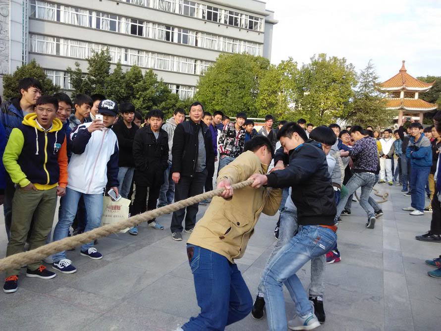 为丰富学生课余文化生活,营造和谐校园氛围,提高学生参与体育健身的积极性,12月19日下午第三节课,我校机电科全体学生在主楼广场,举行了紧张激烈又充满活力的冬季拔河比赛。比赛以分年级抽签的方式决定比赛对手,采取三局两胜淘汰赛制。