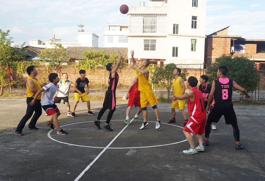 下午16时,双方本着友谊第一,比赛第二的原则,伴随着裁判员的一声哨响,篮球赛正式拉开了序幕。比赛一开始,双方就拼抢激烈。争球、传球、上篮、球进了!一开场,教工队先得分,他们生龙活虎,激情四射。此时,平时英姿勃发的驰骋在三尺讲台的教师们,用他们精彩的球技诠释着自己的雄心与热情。而学生队也毫不示弱,他们的防守固若金汤,同时也不乏快速突破的精彩进攻,学生们的表现也毫不逊色。场上的对抗精彩,场下双方啦啦队也尽心尽力的为自己的队员呐喊助威,为自己的队员得分雀跃欢呼。最终学生队以85比70的优势赢得了比赛。