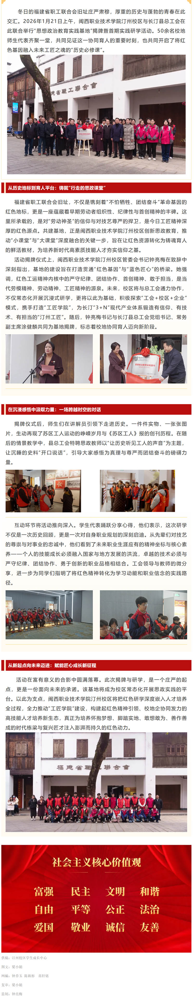 校地携手打造“行走的思政课堂”闽西职业技术学院汀州校区思想政治教育实践基地揭牌暨首期实践研学活动侧记