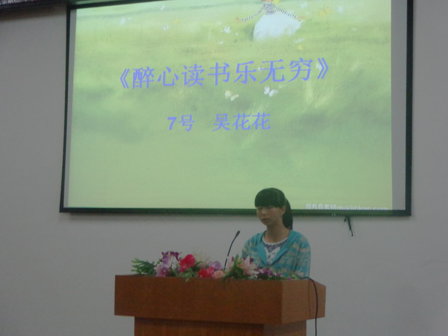 演讲决赛于晚上6点50分在教工会议室正式开始。经过层层选拔,共有11位选手参加比赛。此次比赛紧紧围绕“书香校园”这一主题,选手们结合课内外的阅读,有感而发,热情昂扬,语调优美,感情充沛,自然大方地进行脱稿演讲,诉说着与书的真实有趣故事。他们有的介绍了从海伦·凯勒、夏洛蒂·勃朗特、斯宾塞.约翰逊等大师身上懂得的做人理财的道理,有的交流了从《钢铁是怎样炼成的》、《活着》等名著中获得的人生启迪。选手们感情真挚,演讲内容积极上进,讲出了自己通过读书得到的收获,展示了通过读书而健康成长的精神风貌。