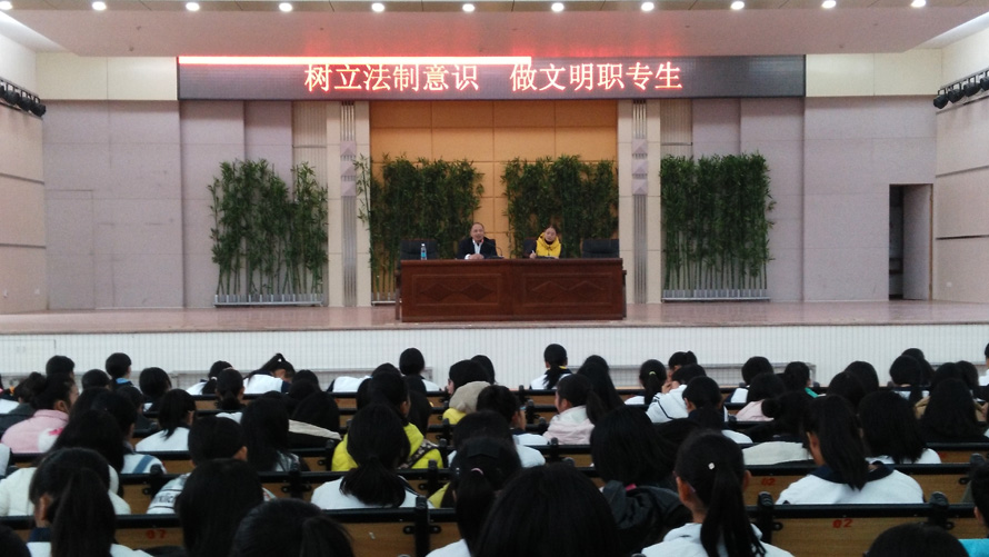 通过这次法制报告会,15级的学生受到了一次生动的法制教育,增强了法制观念,认识到法律允许做的才去做,法律不允许做的坚决不做,法律要求做的必须去做,学会了依法律已、依法办事、依法维护自身合法权益,要不断学法、守法、用法,要自觉抵制不良文化和犯罪行为,要理智行事,做个遵纪守法的合格公民,抛除所有杂念,在学习中寻找乐趣、创造乐趣,为实现心中远大目标而不懈努力,成就自己美好的人生。