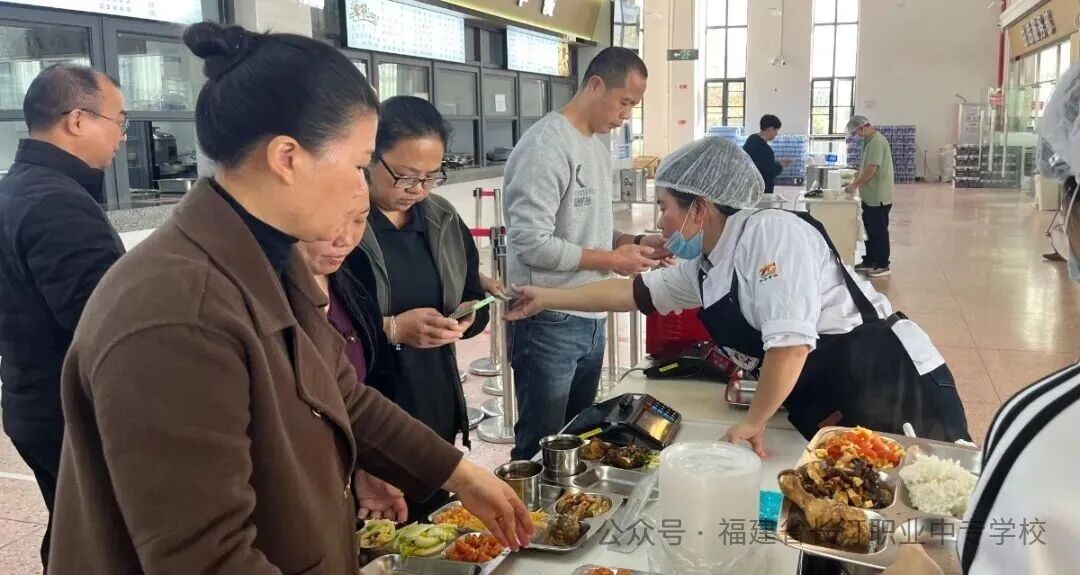 体验不止于“看”,更在于“做”。家长代表们戴上口罩与手套,化身志愿助厨员,与食堂工作人员一同打饭、盛汤,亲身感受餐饮服务的辛劳与不易。午餐时分,亲子陪餐环节温馨开启,家长们为孩子端上热气腾腾的饭菜,围坐一桌共享美食,边吃边倾听孩子对饭菜口味、营养搭配的真实反馈,暖意融融。