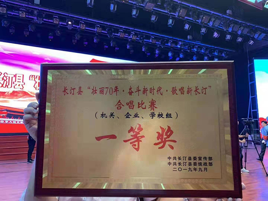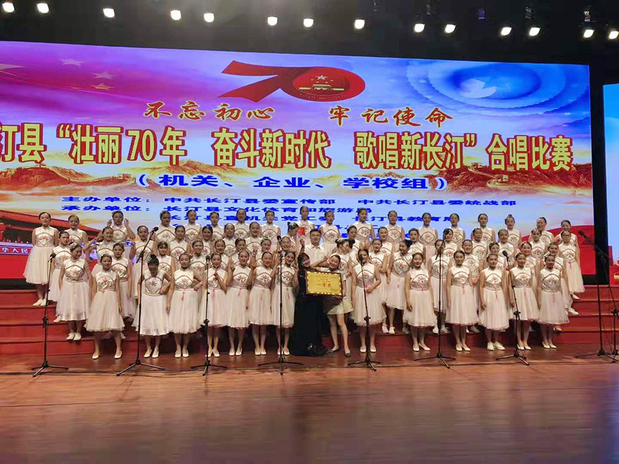 9月28日晚,长汀县"壮丽70年•奋进新时代•歌唱新长汀" (机关、企业、学校组)合唱比赛在汀州客家剧院举行。来自全县16支机关、企业、学校的参赛队伍参加了比赛。我校合唱团以昂扬向上的精神风貌、稳健大气的舞台气场、专业艺术的演唱、精准的伴奏赢得了评委的高度肯定和现场观众的热烈掌声,最终我校合唱团参赛曲目《在灿烂阳光下》斩获一等奖第一名。