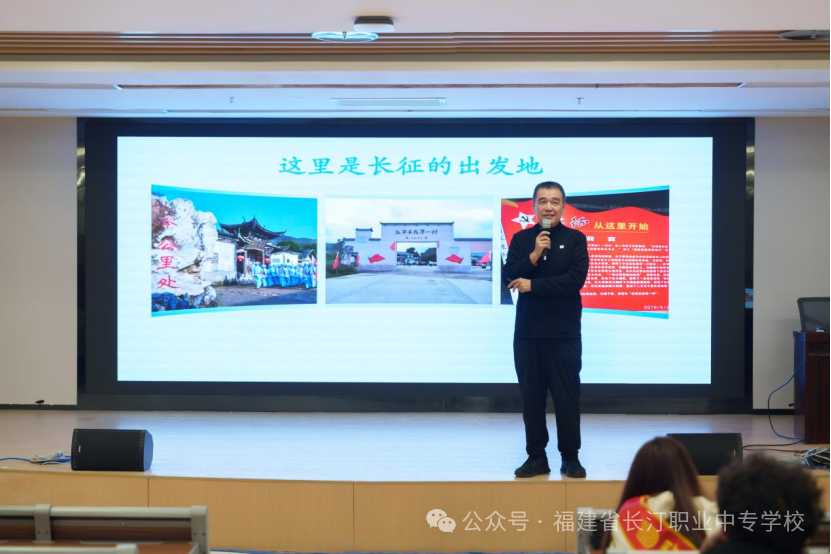 讲座伊始,卢伟耀书记以松毛岭战役这一闽西革命历史的重要篇章为切入点,伴随着他亲自创作的《浴血奋战松毛岭》激昂旋律,现场师生仿佛回到了那个烽火连天的岁月。钢琴前奏渐强时,在场师生纷纷挺直腰背、神情肃穆;旋律收尾瞬间,掌声响彻全场。卢书记深情回顾了“红军长征第一村”中复村的革命岁月,让历史记忆与音乐情感深度共鸣,使红色基因真正融入每位学子的血脉之中。