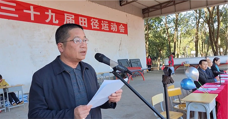 校长赖友生为本届运动会致辞,他祝愿运动员们发扬顽强拼搏的精神,赛出友谊,赛出风格;勉励师生守好岗位、尽职尽责、通力合作,为开好一个文明、安全、有序的运动会贡献力量。