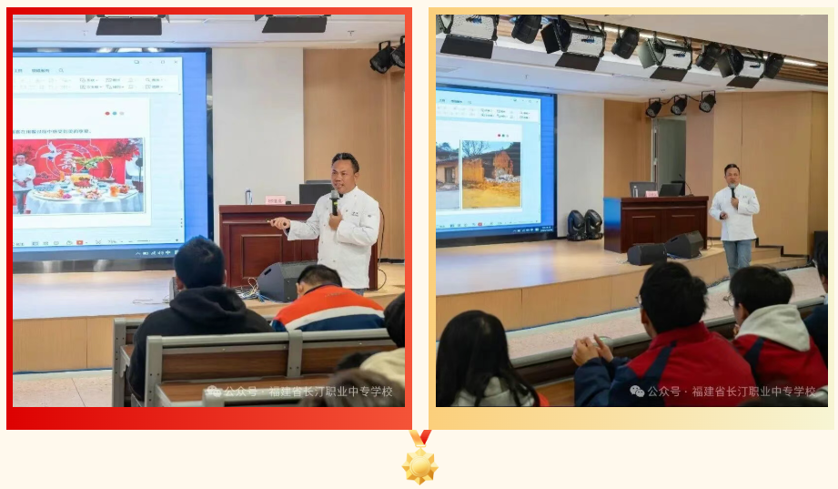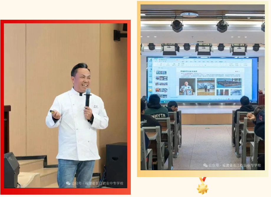 为厚植学生工匠精神,传承汀州客家饮食文化。12月25日,学校特邀福建省劳动模范、注册中国烹饪大师邱道良,在校西侧教工会议室为商贸系烹饪、旅游专业200余名学子带来“如何成为一名优秀工匠”主题讲座。讲座以匠心传承为核心,融合技艺分享与文化传播,为青年学子点亮职业成长之路。