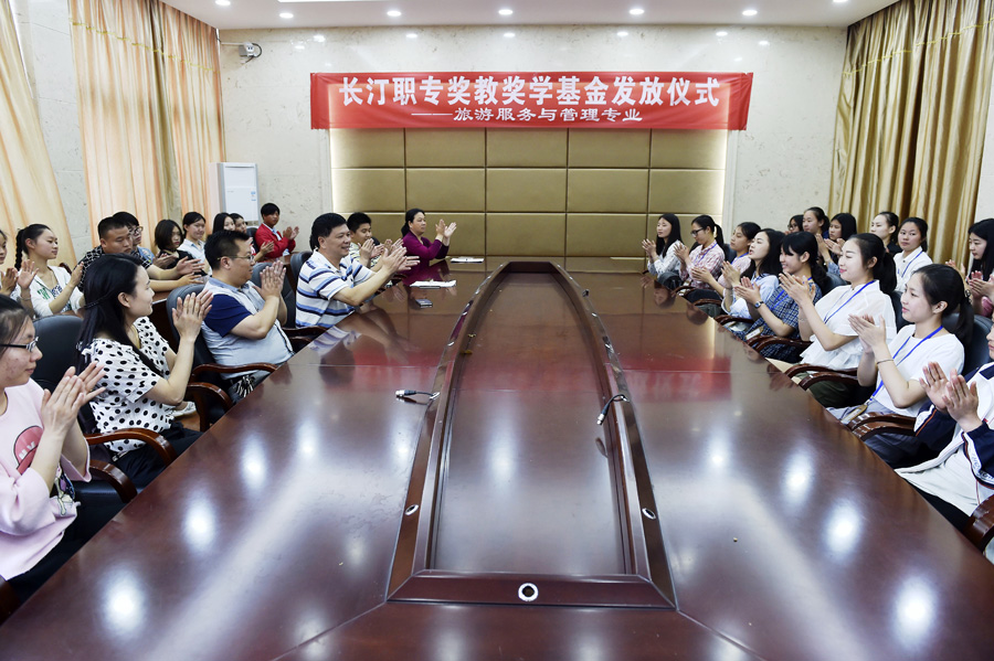 2016年5月4日上午,我校在行政会议室隆重举行旅游服务与管理专业奖教奖学基金发放仪式。陈腾校长、兰福荣书记、古韵汀州旅游发展有限公司曾庆恩总经理、长汀县古韵汀州旅行社有限公司丁强强总经理、陈晓玲副校长及旅游服务与管理专业的全体学生及教师代表参加了仪式。仪式由学生工作处兰业腾主任主持。