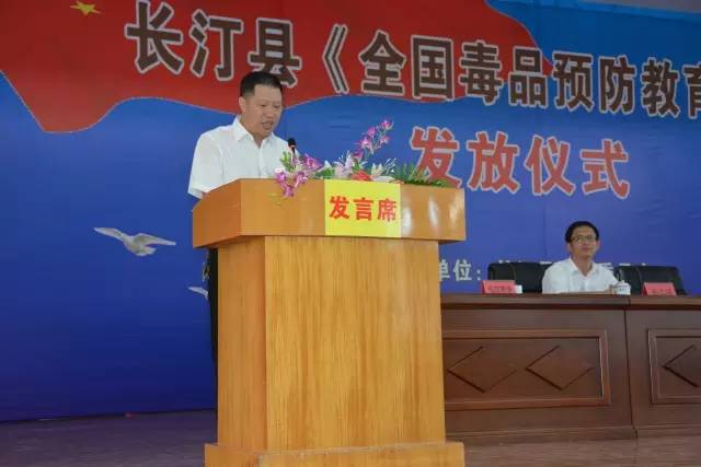 2016年10月20日下午,由长汀县禁毒办、长汀县教育局主办,长汀职专承办的《全国毒品预防教育读本》发放仪式,在我校实训中心多功能报告厅举行。县领导马水清,吕金淼,李强,县委政法委、县公安局、教育局等单位负责人以及部分中小学校长出席此次活动。我校丘晓松校长和学生代表在会上分别作了发言。