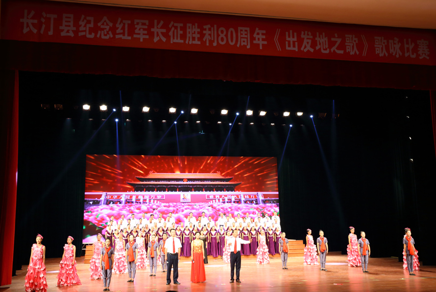 10月20日晚7点30分,由中共长汀县委宣传部、组织部主办的长汀县纪念红军长征胜利80周年歌咏比赛在汀州客家剧院隆重举行。
